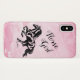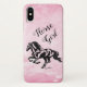 Personalisieren Sie dieses einzigartige "One of a Kind" Black Horse Cell iPhone Case! Es hat eine Silhouette mit schwarzgaloppierendem Pferd auf rosa und weißem Hintergrund und die Worte...."Pferdchen"! Original Art Design von Künstler Kerry Miller.