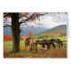 Pferde trafen sich im Herbst auf einem Berggipfel mit Bergen im Hintergrund.