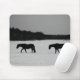 Pferde On Snow - Landschaftsfoto in Schwarz-Weiß von zwei Pferden, die über ein schneebedecktes Feld laufen.