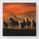 Pferde bei Sonnenuntergang Quadratische Wanduhr