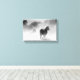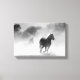 Pferde, die durch Nebel in Schwarz und Weiß laufen Leinwanddruck