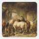 Pferde, die im Stall füttern Quadratischer Aufkleber