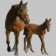 Ein Fohlen lehnt sich an die Stute und übt die Balance