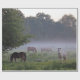 Bauernhausart-Packpapier. Pferde im Nebel in einer Wiese in der Landschaft.