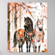 Schwarzes Pferd und weißes Pferd stehend in einem roten Herbstwald.