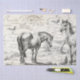 Pferde in Weidenzaun Französisch Script Decoupage Seidenpapier