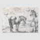 Vintage Skizze von zwei Pferden in einer Wiese mit einem Zaun und Hühnern mit Vintagem französischem Schriftzeichen und einer französischen Postkarte "Carte Postale" und Poststempel auf Pergamentboden. Ideal für Enthusiasten und Enthusiasten der Pferde.
