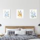 Fügen Sie mit diesen wunderschönen Kunstdrucken die Touchs in das Kinderzimmer oder Kinderzimmer Ihres Babys ein! Das Design umfasst Pferd, blaue Aquarellfarben und Grünpflanzen.