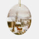 Wunderbares Vintages Americanabild der feinen Kunst eines Pferde-und Sleigh-Reiters, der ein Bauernhaus und eine Scheune an einem schneebedeckten Tag im Land, durch Durrie führt, ist auf dieser Verzierung. Bild ist das public domain wegen des abgelaufenen Copyright.