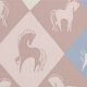 Pferde und Rautenmuster in blau, altrosa und creme