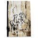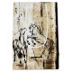 Pferde machen das perfekte Kunstthema: Dieses originelle Stück Pferdekunst zeigt zwei abstrakte Pferde, die miteinander auf einem bräunlichen und schwarzen, bedrückten Vintagen Hintergrund spielen. Ein klassischer Landausdruck für Pferdeliebhaber oder Reiter- und Tierliebhaber.