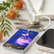 Ein blauer, weißer und rosafarbener Schlüsselanhänger mit modernem Pferdemuster. Pferdefreunde überall werden es Liebe geben. Beide Seiten haben Textbereiche für die Anpassung. Sondergeschenk für Pferdebesitzer und Reiter.