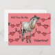 Diese niedliche Valentiner Postkarte wird Jung und Alt gleichermaßen begeistern mit dem süßen Pferd, das zu Ihrem Valentin frage. Speziell für Pferdefreunde, Tierfreunde und alle, die eine niedliche Karte Lieben. Der Valentinstag kann für einige unangenehm sein, besonders wenn man will, seine Karten an Klassenfreunde und Nachbarschaftsfreunde auszugeben. Nehmen Sie sich das Geben ab und bringen Sie einem, der das Glück hat, diese Karte zu erhalten, ein Lächeln.