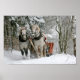 Dieses schöne Bild zeigt ein Team von Pferden, die einen Schlitten durch den Schnee ziehen. Ideal für Pferdefreunde jeden Alters.