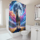 Dieser Duschvorhang hat ein Pferdedesign darauf.