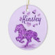 Personalisieren Sie dieses "Eine von einer Art" Pferd Weihnachtsschmuck! Es verfügt über eine Galopp Pferd Silhouette in schönen violetten Blumen, umgeben von Lila Herzen! Original Art Design von Künstler Kerry Miller.
