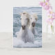 Zwei weiße Camargue-Pferde schwimmen in Südfrankreich gemeinsam in Richtung Küste. Ein zusätzliches Bild der Pferde ist in der Karte zu sehen. Alle Bilder sind von Carol Walker und Copyright Living Images von Carol Walker.