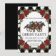 Feiern Sie Ihre Kentucky Derby Party mit dieser eleganten Pferderennen-Einladung mit galoppierenden Pferden und roten Rosenblumenrändern. Perfekt für Derby-Tag-Partys, Pferderennen-Veranstaltungen und Vintage-Style-Treffen. Ideal für Frühlingsfeiern, druckbare Einladungen und klassische Derby-Party-Dekorationen.