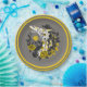 Teller aus Papier mit Pferdeschädel mit gelben Rosen und gelbem Schnitt. Ideal für Los dias de los Muertos, Halloween oder irgendeine unheimliche Ansammlung.