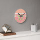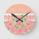 Pfirsich mit rosa Rose Runde Wanduhr