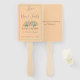 Ein themenorientierter Handmit blumenfan für Ihre Hochzeit, dieses Einzelteil wird auf Qualitätsmaterial gedruckt, das einfach zu personifizieren ist. Wenn die Informationen unter Verwendung eines Pfirsichhintergrundes angezeigt sind, fügt der braune ergänzende Schriftart und die blaue Grenze Schönheit dem Entwurf hinzu. Personifizieren Sie Ihr heute!