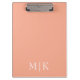 Pfirsich und Weiß | Modernes Monogramm Klemmbrett