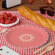 Pfirsich und weiße Blume auf Korallen Pappteller