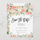 Ein hübscher boho Pfirsich mit Blumen und Postkarte des Grüns Save the Date. Einfach, die Textdetails zu Ihren Selbst zu ändern. Lose zusammenpassendes Briefpapier in dieser hübschen Sammlung. Besichtigen Sie bitte mein Geschäft, um die vollständige Auswahl zu sehen.