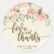 Ein schöner Dankeschön Aufkleber mit einem Aquarellpfirsich und Pastellfarben Blumendesign, Set auf Elfenbeinhintergrund mit Pinselschrift "Liebe und Dank". Einfache Änderung oder Löschung des Textfelds, das zur Anzug Ihrer persönlichen Anforderungen zur Verfügung steht. Ideal für Hochzeiten zu jeder Jahreszeit! Einige Grafiken, die von www.TwigsAndTwineArt.com verwendet werden