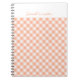 Ein hübsches Notizbuch mit einem Gingham-Rahmen in einer Pfirsiche und cremefarbenen und personalisierten Titel.