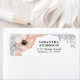 Dieses Adressetikett bietet eine wunderschöne Aquarellgrafik von pfirsichfarbenen Blume und Grünpflanzen auf einem hellstaubigen blauen Hintergrund.