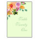 Dieser farbenfrohe grüne Pfirsich- und rosa Blumenstrauß eignet sich perfekt für Ihren Hochzeitstag oder ein Party im Garten. Die Script-Tischnummern verleihen Ihrem Tag Eleganz.