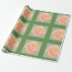 Pfirsichrosa Gelbe Rose Design auf grünem Hintergr Geschenkpapier