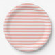 Pfirsichrosa und weiße Cabana Streifen Papiere Tel Pappteller