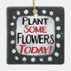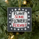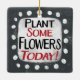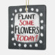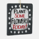 "Pflanze Einige Blume Heute" ist ein niedliches Textdesign in Grau mit Schwarz und Rot. Er sitzt auf einer weißen Akzent-Form und niedliche weiße Polka-Punkte, die ihn umgeben.