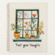 Niedliche Pflanze liebt Planer/Zeitschrift mit einem schönen Design von handgezeichneten Pflanze, die auf einem Fensterbrett sitzen. Die Worte "Pflanze gute Gedanken" werden unter dem Kunstwerk in einem handgeschriebenen Schriftart geschrieben. Perfektes Ruhestandsgeschenk für ganzjährig geplante Gartenanlagen.
