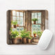 Grüne Pflanze in einem sonnigen und rustikalen Bauernhaus Fenster