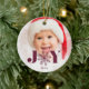 Das süße und festliche Urlaubssornament besticht durch ein Foto mit "JOY", das in bordeauxfarbenen Pflaumenschrift überlagert ist. Eine Schneeflocke-Abbildung ersetzt das "O". Personalisieren Sie sich mit dem Jahr unten. Der Ornament kehrt zurück, um ein festliches nordisches Pullover zu enthüllen.