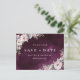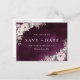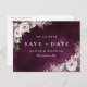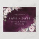 Botanische Blüten und Grünpflanzen in rosa, rosa, bordeauxrot und grau auf lila Pflaumenboden. Moderne und elegante, großartige Save the Date Postkarten für moderne Hochzeiten, rustikale Hochzeiten, Hochzeiten im Boho und Hochzeiten im Garten im Herbst. Sehen Sie sich alle passenden Stücke in der Sammlung an.