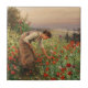 Dieses Design zeigt ein Gemälde des amerikanischen Künstlers Daniel Ridgway Knight (1839-1924). Es zeigt eine attraktive junge Frau, die sich auf einem Feld umbiegt, um einen roten Mohn zu pflücken. Sie ist von vielen anderen blühenden roten Mohnchen umgeben. Sie trägt ein traditionelles Kleid und hat ihr brünettes Haar in einem Brötchen gefesselt. Es ist ein Bild der Schönheit der Natur. Das Originalwerk wurde 1898 gemalt.