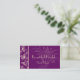 Dieser Visitenkarteentwurf ist sicher, Aufmerksamkeit zu erregen und Ihnen zu helfen, in der Menge heraus zu stehen. Der Hintergrund ist die Pflaume, die lila ist und es gibt eine schöne Blumengraphik in der Creme, die ihm einen eleganten Blick gibt. Vervollkommnen Sie für jedes mögliches Geschäft aber besonders groß für Brautsalon, wedding Planung, Ereignisplanung, Catering, Nagelsalon, Wellness-Center, Schmuck, Cosmetologist, Mode, Schönheitsberater oder, immer wenn Sie eine elegante Touch möchten. Addieren Sie Ihre Informationen und es ist bereit zu gehen!