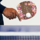 Dieses Tischtennispaddel zeigt einen Namen oder einen eigenen Text, der durch eine Pflaumendusche gerahmt ist, auf einem Hintergrund hübscher Schokoladenbraun.