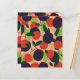 Frische, saftige Farbgebung mit illustrierten Pflaumen und Kirschen mit grünen Blätter auf rosa Untergrund.