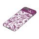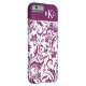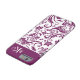Elegantes, Vintages, girly, trendy, Blumendamastmuster in der Pflaume mit einem weißen Hintergrund und ein Pflaumenakzentspitzenfarbblockstreifen mit personalisierten kundenspezifischen Initialen des Monogramm- mit Ihrem ersten, mittleren und letztennamens in einem preppy Schriftart. Beschließen Sie Ihren eigenen Schriftart und Farben, um es Ihre Selbst zu machen und den Blick zu schaffen, den Sie wollen. Vervollkommnen Sie Geschenk für Weihnachten, Uni und Geburtstage. Wählen Sie Ihr Modell von Apple iPhone 6 Hüllen und Abdeckungen. Schickes und stilvolles Mode-Accessoire für Mädchen, Jugendliche, Frauen.