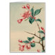 Das Zeichnen zeigt eine Niederlassung eines Baums der japanischen Pflaume, mit Blätter und rosa Blüten. Zeichnen von der Bibliothek der Kongreßsammlung (Japanerdrucke und -zeichnungen).