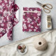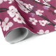 Pflaumen und Pflaumenblüten, inspiriert von Steinobst und Blumen, ein elegantes lila botanisches Muster.
