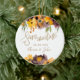 Pflaumengelbe Blütengoldkalligrafie Save the Date Keramik Ornament