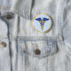 Dieses Nursing Caduceus verfügt über goldene Schlangen, die rund um ein hellblaues Team mit tiefblauen, hochgehobenen Flügeln und dem großen Buchstaben N miteinander verbunden sind.