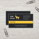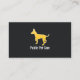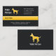 Eine schwarze Visitenkartenvorlage für die Pflege von Haustieren und Heimtieren. Es eignet sich auch für Tierärzte oder Tierkliniken. Das Template-Design zeigt den Firmennamen und eine Silhouette des Hundes auf der oberen links Seite. Rechts vom Firmennamen und der Silhouette finden Sie alle Kontaktdaten. Services und ein Slogan befinden sich auf der Unterseite der Visitenkarte.