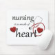 Eine grafische Krankenschwester Design mit dem Text "Pflege ist ein Herz" auf einem Mauspad.